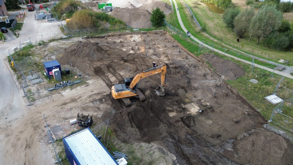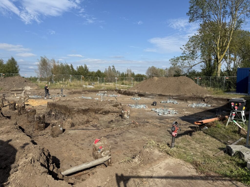 Hieronder: Op maandag 16 juni 2025 werd de eerste schroefmortelpaal geboord. NB deze “heipaal” wordt dus niet geheid, maar ter plaatse in de grond gevormd, waardoor geen hinder voor de omgeving optreedt.