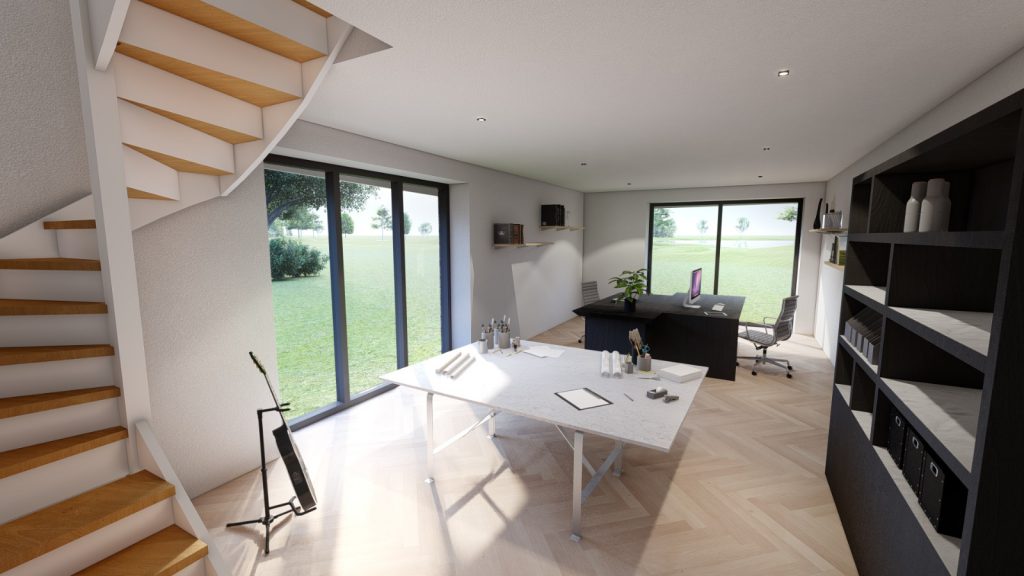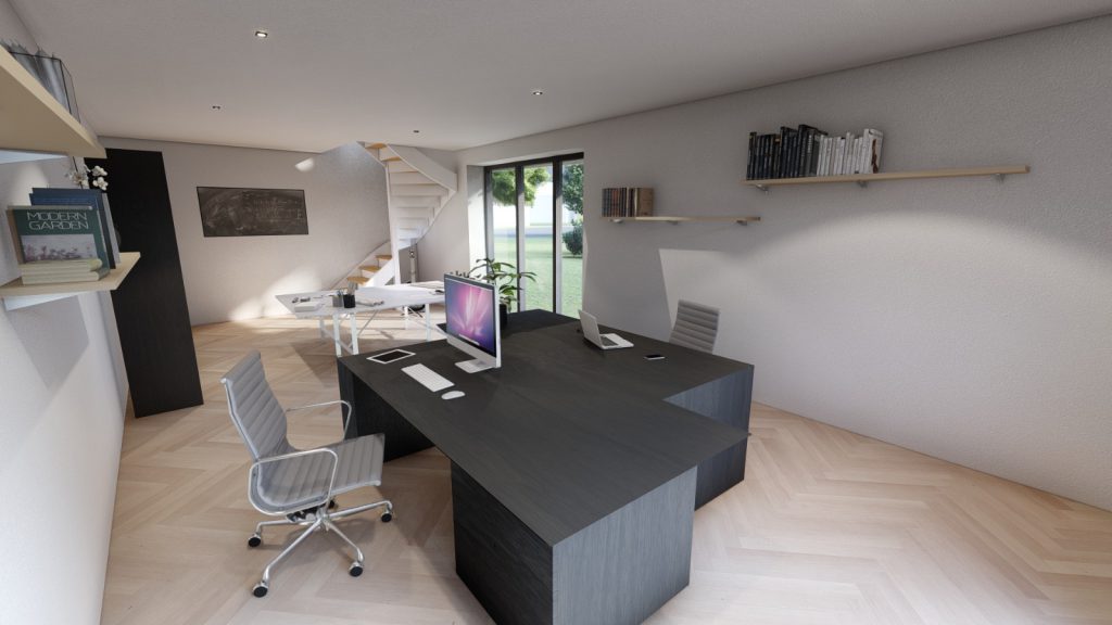 En wat kun je allemaal met de ruime study doen! Een kantoor? Een hobbyruimte? Logeerruimte?, Fitness? Muziekkamer? (NB de study’s bevinden zich op de begane grond onder het eigen appartement en grenzen aan bergingen, dus geen problemen met gehorigheid).